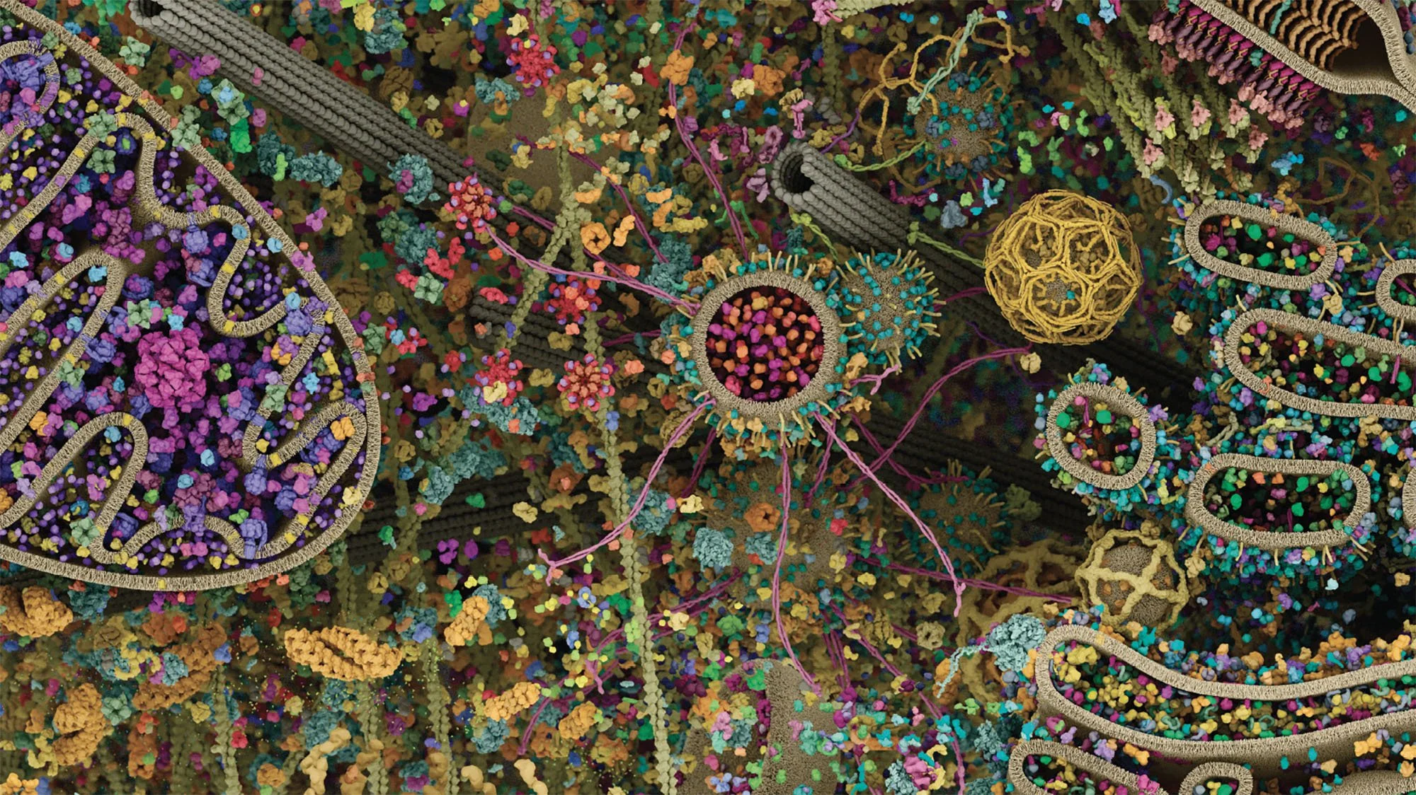 Coupe transversale du paysage cellulaire à travers une cellule eucaryote par Evan Ingersoll et Gaël McGill, 2015